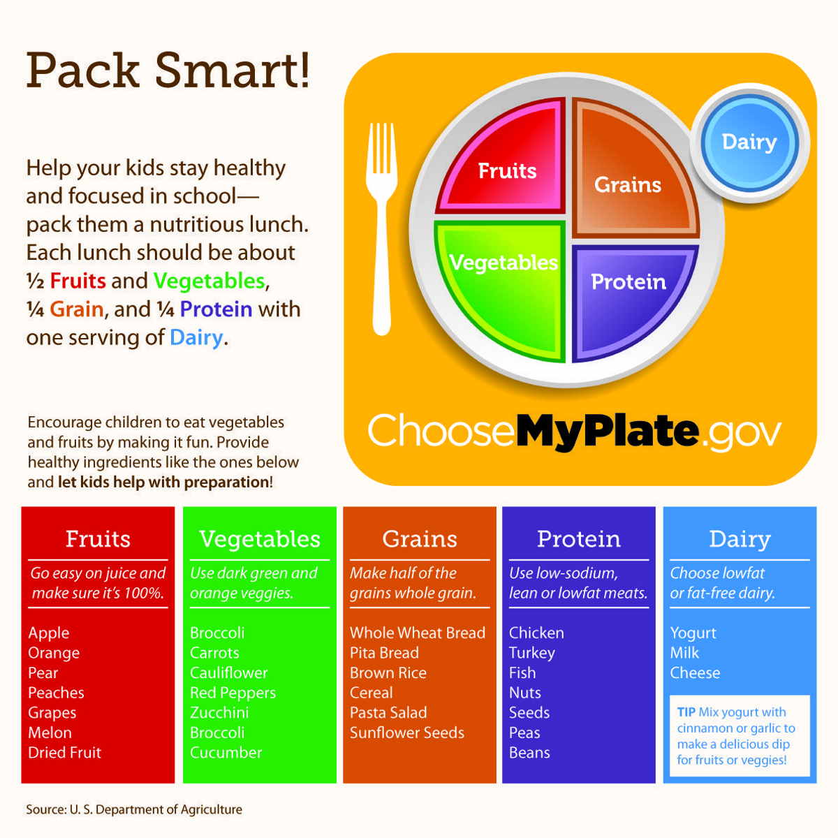Đây là hướng dẫn thực phẩm mới nhất của USDA cho người Mỹ. Nó được ra đời vào năm 2011 để thay thế cho hướng dẫn dạng kim tự tháp truyền thống. Có lẽ người đọc sẽ quen hơn với dạng hướng dẫn thực phẩm kim tự tháp. Thế nhưng khi chuyển sang myplate (dạng đĩa ăn) thì đây được coi là bước cải tiến. Nó sẽ dễ tiếp cận, dễ nhớ và thân thiện hơn rất nhiều.